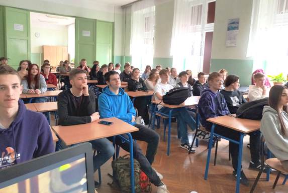 6.02.2023 r. uczniowie klasy 2b uczestniczyli w pokazowych zajęciach na Politechnice Rzeszowskiej. Zajęcia przygotował i prowadził dr inż. Tomasz Pacześniak, adiunkt w Katedrze Chemii Fizycznej. Zajęcia dotyczyły energii odnawialnej, przede wszystkim pozyskiwaniu wodoru. Taki wodór charakteryzuje się tym, że jest bezwonny, nietoksyczny, ma bardzo wysoką wartość energetyczną w przeliczeniu na masę i spala się do czystej wody.