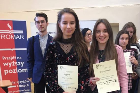W dniu 30.11.2018r. w Zespole Szkół Spożywczych w Rzeszowie odbyła się 5 edycja Międzyszkolnego Konkursu Piosenki Obcojęzycznej. Reprezentantami naszej szkoły byli uczniowie: Katarzyna Mazur – klasa 1a, Łukasz Kołodziej – klasa 1h i Kinga Siewierska – klasa 2f.