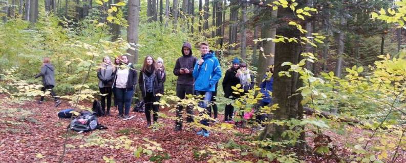 Po dotarciu na miejsce wyruszyliśmy w trasę. Wycieczka do granic rezerwatu trwała ponad godzinę. Po drodze dowiedzieliśmy się wielu ciekawych rzeczy o życiu lasu. Naszym przewodnikiem ekologiem był p. Mirek Ruszała, wieloletni nauczyciel biologii w III LO, członek założyciel Stowarzyszenia Ekologicznego Ekoskop, instruktor ZHP i społecznik.