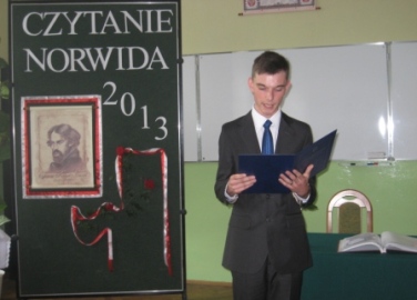 5 czerwca 2013 r. odbyło się w naszej szkole „Czytanie Norwida”. Po raz czwarty zaproszeni goście prezentowali wybrane utwory Patrona naszej szkoły. Dodajmy, że jest to akcja ogólnopolska zainicjowana w 2009 roku przez XXIV Liceum Ogólnokształcące im. Cypriana Norwida w Warszawie. Patronat honorowy objął Pan Tadeusz Ferenc – Prezydent Rzeszowa oraz Ks. bp Kazimierz Górny – Ordynariusz Diecezji Rzeszowskiej, za co serdecznie dziękujemy.
